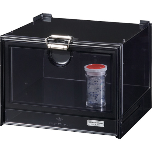(株)サンプラテック 品番:00056 サンプラ サンプラミニデシ(スモークタイプ) MD-1S 1段 特長保管品の変質・退色を防止するスモーク透明タイプです。性能等はサンプラ ミニデシと変わりありません。小型で軽く、半導体部品、電子部品の通函、社内の移送用にご愛用頂いています。研究室や実験室ではカメラや精密機器部品等の保管に適しています。ロッカーや棚に収納でき、作業台実験台を広く使用すること