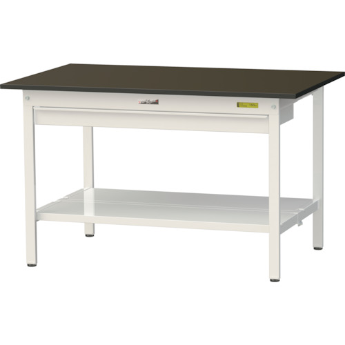 山金工業(株) 品番:SLM-1275WTT-BRW ヤマテック ワークテーブルLABシリーズ 固定式H740mm ワイド引出し・全面棚板付 指紋レスメラミン天板 W1200×D750 特長汚れが目立ちにくい指紋レスメラミン天板を使用した作業台です。実験室・研究室でご使用いただけます。脚部はH740mmのため座り作業に適しています。長尺ものの収納に便利なワイド引出し付きです。用途実験室・研究室