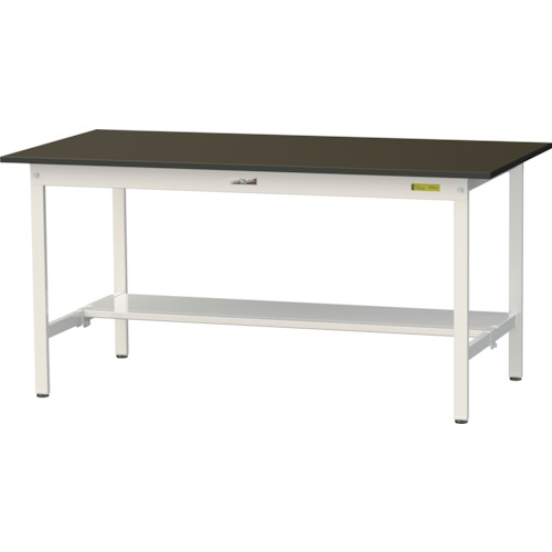 山金工業(株) SLM-1575T-BRW ヤマテック ワークテーブルLABシリーズ 固定式H740mm 半面棚板付 指紋レスメラミン天板 W1500×D750