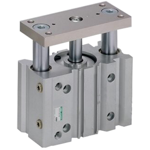 CKD(株) 品番:STG-M-63-50-T2H-D CKD ガイド付シリンダ すべり軸受 STG 63パイ 特長横荷重や偏芯荷重に強い製品にするために、ガイドロッド軸受部を改良するとともに、メタル軸受材料を変更しました。従来品に比べ耐荷重性能が向上し、さらに安定作動も実現しました。シリンダ本体の剛性はそのままに、アルミボディ形状を見直し、軽量化、省資源化を実現しました。ピストンロッドの取付
