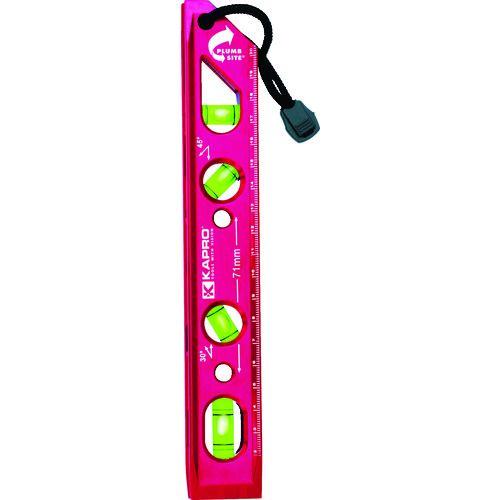 KAPRO(カプロ)Kapro China Ltd. 品番:KP925702508EM0 KAPRO アルミレベル MAGNETIC TORPEDO LEVEL 鉄骨工事の測定に便利特長磁石付で鉄骨工事の測定に便利です。水平、垂直、30°、45°測定できます。V溝付きでパイプなどが測定できます。気泡管の目盛線の中央に気泡がくるようにして測定してください。用途水平、垂直、30&d