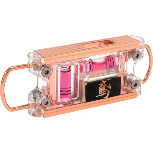 新潟精機(株) 品番:ED-TB2PGR SK 鳶レベル2 ピンクゴールド 特長●化学の力と匠の技で金属を「化匠」する「スワオメッキ」と水平器メーカー「エビス」とのコラボ商品です。●当社比3倍の超強力磁石で、鉄骨工事に便利です。●落下防止コード対応シャックルとカラビナ対応の大型シャックルでカラビナへの接続、取り外しがスピーディです。●測定面V溝付でパイプなどの測定に便利です。●4本線アクリル気