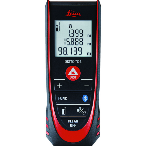 (株)TJMデザイン 品番:DISTO-D2BT タジマ レーザー距離計ライカディストD2 Bluetooth(R)機能搭載!!携帯に便利な軽量・コンパクト設計特長Bluetooth(R)機能搭載(iPhone/AndroidアプリLeicaDISTOsketchに対応)しています。携帯に便利な軽量・コンパクト設計です。測定基準位置を自動で検知する多機能エンドピースを搭載しています。最大・最少