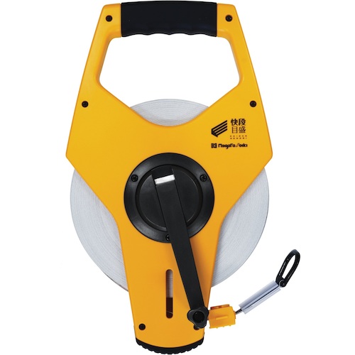 新潟精機(株) 品番:GFM-50KD SK ラク巻 快段目盛 50m 特長ダストリムーバーがテープに付いた砂やゴミを除去し、巻き込みを防ぎます。3倍速テープ巻き取り機構です。引き出した時の空転によるテープの出過ぎを防ぐHBS機構です。手にジャストフィットするグリップラバーです。作業性に優れたトップラバーとショックアブソーバーです。1mm単位の目盛が見やすい階段状目盛です。偶数飛びで数値を把握