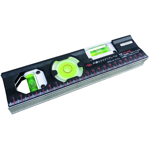(株)アカツキ製作所 品番:EX-230B KOD 外構エクステリアレベル 大型気泡管で視認性抜群!特長ブロック・レンガ積の際、丸型気泡管で1発測定可能です。ブロック・レンガ積に最適です。用途外構工事に活躍。商品スペック仕様・規格2軸測定可能長さ(mm):230高さ(mm):56厚さ(mm):27マグネット:無色:黒本体色:黒気泡管色:黄緑精度:±1.5mm/m=±