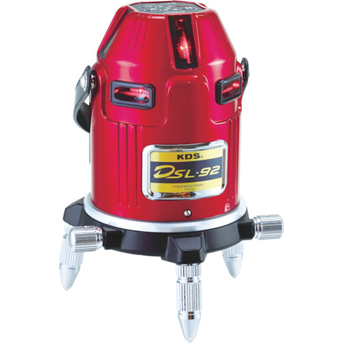 ムラテックKDS(株) 品番:DSL-92RSA KDS レーザー墨出器スーパーレイ92受光器・三脚付 特長盗難火災補償付(ユーザー登録が必要)です。充電池とAC電源の2WAY電源です。4方向たち・全方向水平(照射角360°)・地墨点・鉛直。照明付気泡管。エンドレス微調整ねじ。1年間完全保証します。レーザーラインの視認性が向上しました。用途電子整準方式で安定したレーザーライン/高層建築