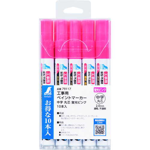 シンワ測定(株) 79117 シンワ 工事用 ペイントマーカー 中字 丸芯 蛍光ピンク 10本入