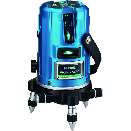 ムラテックKDS(株) 品番:RGL-500RSA KDS リアルグリーンレーザー500受光器・三脚付 特長落ち着いた青色波長で目にやさしいライングリーンレーザーの視認性と赤色レーザーのスッキリしたラインの両方を兼ね備えたリアルグリーンレーザー。従来のリアルグリーンレーザーに比べ青色の波長に寄せているため暗い場所でも見やすい電池又はACアダプターが使える2way電源仕様です。電池残量が分かりや