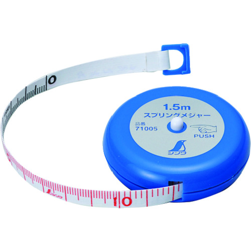 シンワ測定(株) 品番:71005 シンワ スプリングメジャー 特長自動引き込みボタンを押すとメジャーが自動的に引き込まれます。用途洋裁や曲面の測定に。商品スペック仕様・規格両面目盛テープ長さ(m):1.5テープ幅(mm):8テープ厚さ(mm):0.45精度:1.5mで±1.4mm材質テープ:塩化ビニル樹脂被覆ガラス繊維本体・テープ端部:ABS樹脂質量・質量単位25g使用条件-注