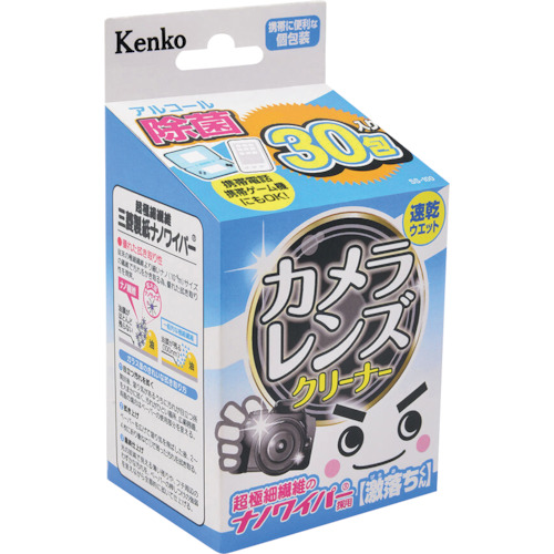 (株)ケンコー・トキナーアウトドアオプト・ライフスタイル営業部 品番:087202 ケンコー 激落ちくんカメラレンズクリーナー 30包入り 特長脂汚れ、指紋を軽く拭くだけでスッキリ落とします。速乾性のウェットシートなので、拭きスジ、拭き跡が残りにくいです。プラスチックレンズ、マルチコートレンズにも使用できます。三菱ナノワイパーを使用しているので、より細かく汚れを拭き取ります。用途カメラ、レンズ