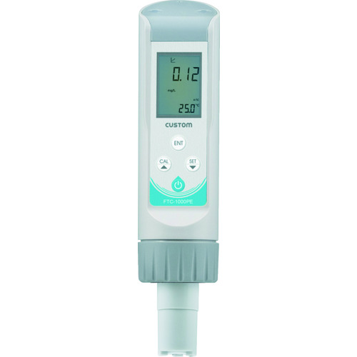 (株)カスタム 品番:FTC-1000PE カスタム 防水残留塩素計 特長大型液晶によるFCL値、温度の同時表示が可能です。測定値が安定した後に、測定値をホールドするオートロック機能付きです。バックライト機能付きです。ポーラログラフ方式(3電極式)のため試薬が不要です。用途工場排水、貯水槽や河川水の水質調査に商品スペック仕様・規格防塵・防水:IP67準拠サンプリング:約3回/秒使用温湿度:本体