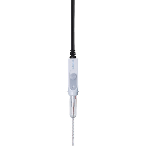 (株)堀場製作所 品番:9618S-10D 堀場 マイクロToupH電極 9618S-10D 特長50µLから測定可能な温度補償センサ付pH電極です。独自の製作技術(特許第4054245号)により、直径3mmのガラス2重管を実現しました。マイクロチューブなどの微量容器に対応します。温度センサを応答部すぐ近くに配置し、温度応答の高速化を実現しました。冷蔵保存していた試料も常温に戻すこ