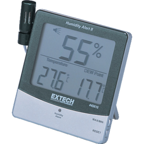 アズワン(株) 品番:1-9337-01 AS 露点温度表示付温湿度計 445815 特長読み取りやすい大型LCD表示部の温湿度計です。相対湿度(%RH)の上限アラーム設定が可能です。最高値、最低値のメモリ機能付きです。プローブを取り外し、延長できます。相対湿度(%RH)の上・下限アラーム設定が可能です。445815モデルはプローブを取り外し、延長できます。用途精度:温度/±1℃