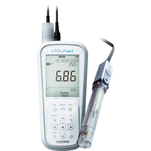 (株)堀場アドバンスドテクノ 品番:D-73S 堀場 PHメーターハンディタイプ D-73S 特長業界初の耐衝撃性・耐薬品性が高いポリカーボネート樹脂を本体ケースに採用しています。容器保護等級IP67に準拠した防水・防塵構造です。1000件のデータメモリーを搭載しています。用途河川や湖沼などフィールドでのpH・水質測定をはじめ、現場での水質検査に。商品スペック仕様・規格再現性:pH&plusm