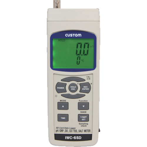 アズワン(株) 品番:1-1933-01 AS データロガ水質測定器 IWC-6SD本体 特長測定中のデータをリアルタイムでSDカード(別売)に記憶させることが可能です。多彩なセンサー(別売)を使用することでpH・ORP・溶存酸素・導電率・総溶解物質濃度・塩分濃度の測定が可能です。用途オートパワーオフ、データホールド機能付き電源:単3電池×6本(テスト用付属)またはACアダプター(別売)商品ス